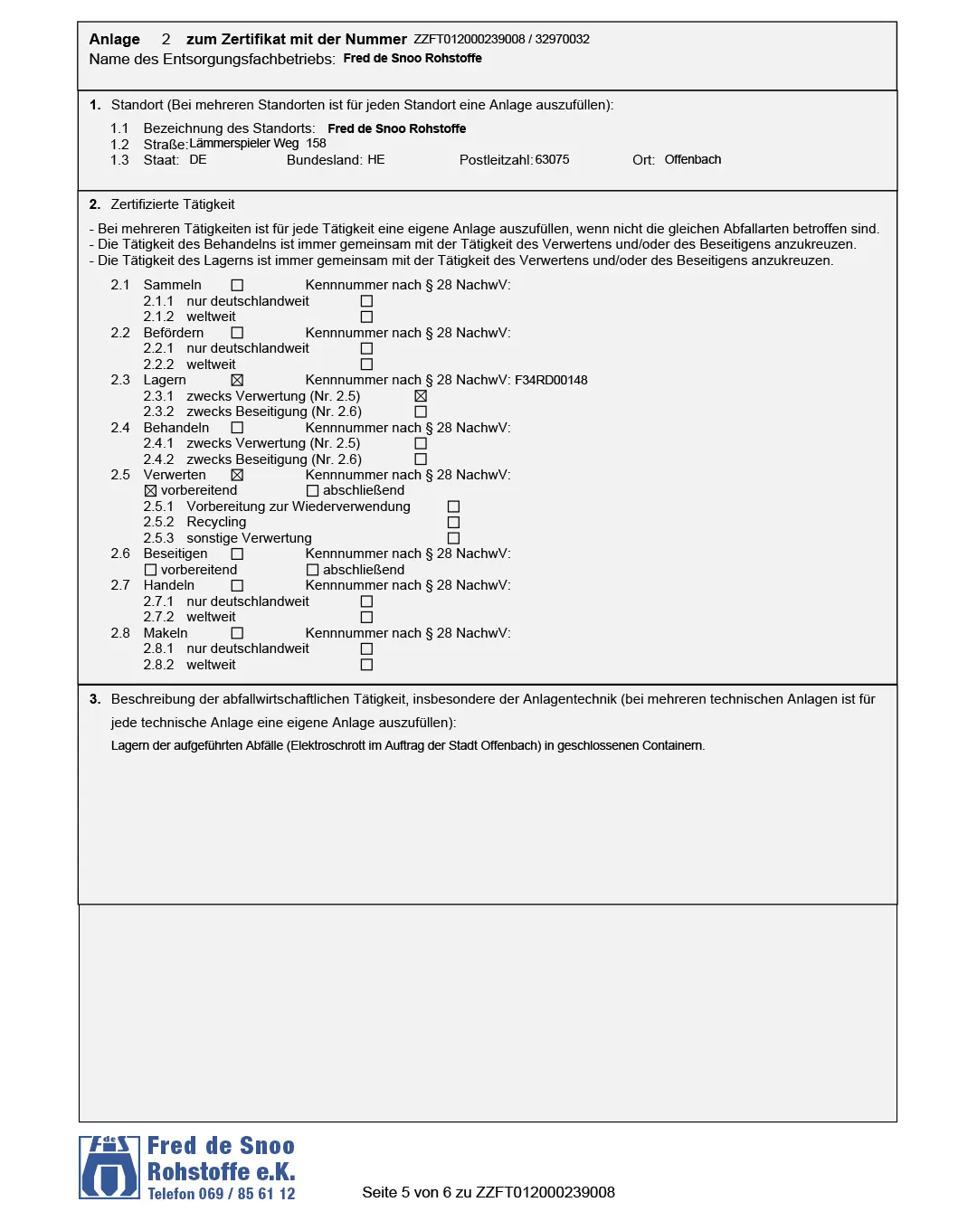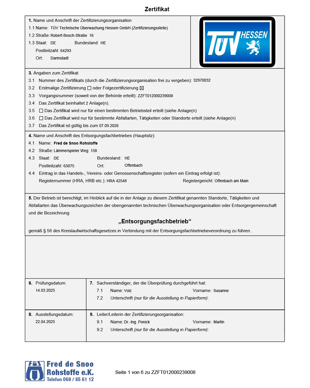 - gesetzesnorme und umweltgerechte Entsorgung und Verwertung von Metallabfällen